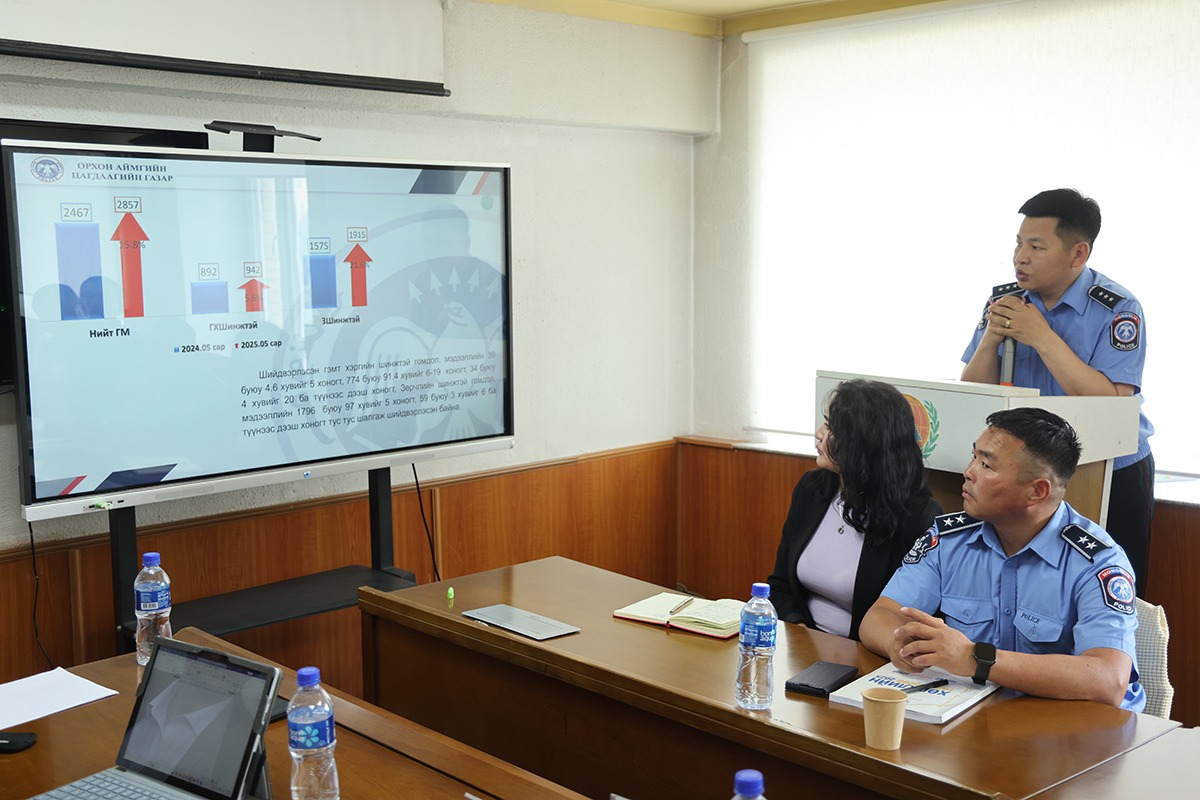 Хөдөлгөөний аюулгүй байдал, тээврийн хэрэгслийн аюулгүй байдлын эсрэг гэмт хэргээс урьдчилан сэргийлэх ажлын хэсгээс эрүүгийн хууль, зөрчлийн хууль тогтоомжийг сурталчлах, нөлөөллийн ажлыг төр болон хувийн хэвшлийн 12 аж ахуй нэгж, байгууллагын 1600 иргэнийг хамруулан зохион байгуулжээ. Орхон аймагт бүртгэлтэй автомашины тоо 38258 байгаа бөгөөд он гарснаас хойш 2158 тээврийн хэрэгсэл шинээр улсын дугаар авч, замын хөдөлгөөний ачаалал нэмэгдэх нэг шалтгаан болж байгаа аж. Энэ оны эхний таван сарын байдлаар согтуугаар тээврийн хэрэгсэл жолоодсон 452 хэрэг, зөрчил бүртгэгдсэн бөгөөд Зөвлөлийн гишүүдээс дуудлагын жолоочийн үйлчилгээг иргэдэд сурталчлах, урьдчилан сэргийлэх чиглэлээр хийгдэж буй контентуудын хийцийг шинэчлэх, мэргэжлийн урлагийн байгууллагуудтай хамтрах зэрэг саналыг илэрхийллээ.